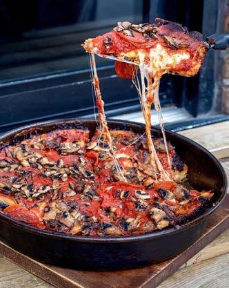 For example, a Pequod’s pizza. The pie starts in Pequods’ custom oven, where they form their signature blow-torched crust. As the pizza