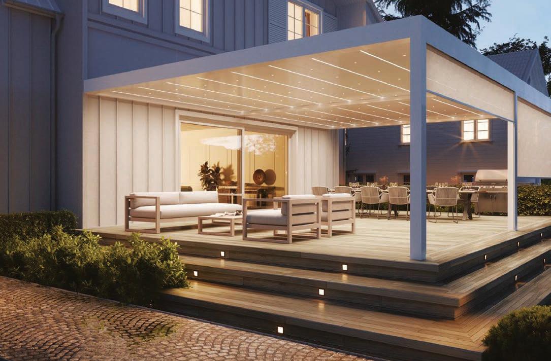 Skyvi Pergolas enhance any home with a sleek, customizable design. Available in dimensions up to 23’ x 16’ x 9’, they can be tailored with premium materials and features to complement your space.