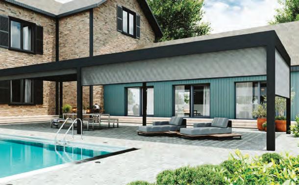 With louvered roofs and side panels, Skyvi Pergolas adjust at the touch of a button. Choose from screen fabrics or glass sliding panels to create an enclosed retreat for year-round enjoyment.