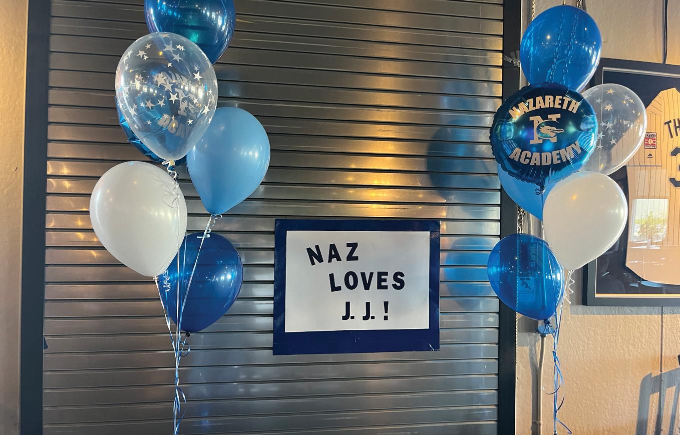 “I saw him play youth football when he was younger,” he said. “He used to come around and watch us when he was younger. He would kind of hang around our quarterback (Carson Bartels) at the time and talk with him. They got along. And then to see him come to Nazareth – I taught him when he was a freshman in math class, and I had the pleasure of coaching him on