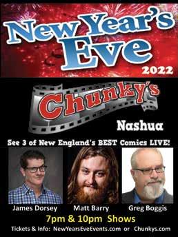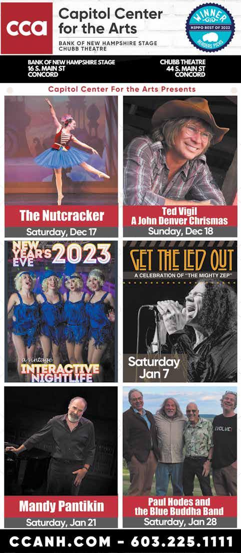 news OF tHe weirD BY ANDREWS MCMEEL SYNDICATION 2023 Winter ConcertSeries Open Christmas Eve 11:30am-5pm | Closed Christmas Day Serving lunch and dinner daily. 40 Andover Road, New London, NH www.FlyingGoose.com | 603.526.6899 Last Minute Gifts Are Here PETER MULVEY Thursday, Jan 19th, 7:30pm 20 hand crafted beers on tap Grab a Growler or 4 packs of cans Gift Cards, Apparel, Glassware, Beer Steins & more! See all the Shows & Buy Tickets at flyinggoose.com RealMEXICAN FOOD and a realGOODTIME Authentic Mexican Food Made to order... Just the way you like it! Offering our complete menu! Visit our website for online ordering for Hooksett Rd, South Willow & Portsmouth! Gift Card Special www.lacarretamex.com 1875 South Willow Street, Manchester, NH 603-623-7705 139 Daniel Webster Hwy, Nashua 603-891-0055 545 Daniel Webster Hwy, Manchester, NH 603-628-6899 172 Hanover Street, Portsmouth, NH 603-427-8319 $5 BONUS CERTIFICATE FOR EVERY $25 GIFT CARD PURCHASE. Thru Dec 31st, 2022 138945