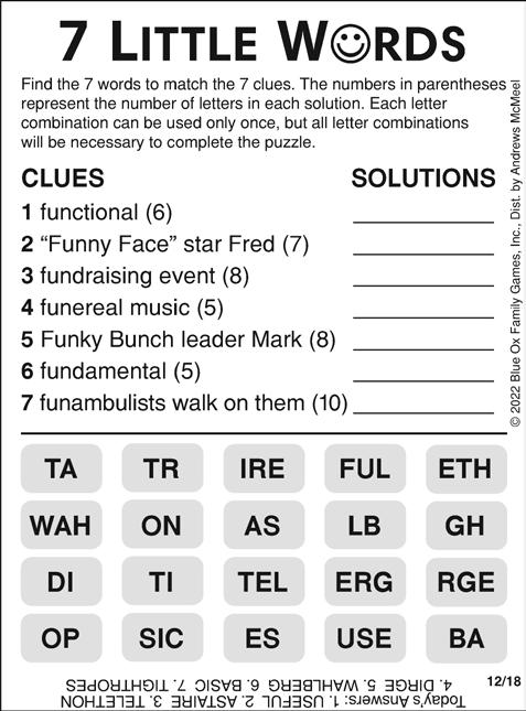 Puzzle B Puzzle C Puzzle a nite SuDOKu Fill in the grid so that every row, every column, and every 3x3 box contains the digits 1 through 9. See last week's puzzle answers on pg 45. r&r answer from pg 43 of 12/8 Jonesin’ answer from pg 44 of 12/8
