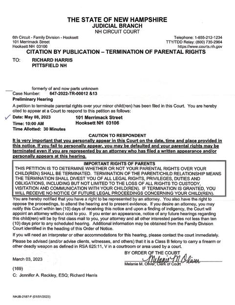 (169) C: Jennifer A. Rackley, ESQ; Richard Harris