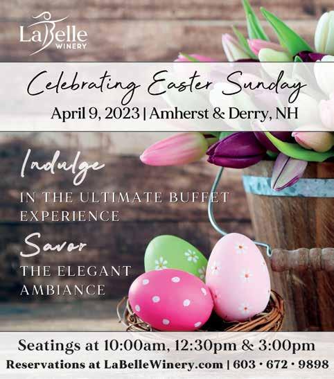 Hippo | MarcH 23 - 29, 2023 | page 3 We’ll Contact Your Current Provider Arrange A Tank Swap Apply $150 In New Customer Credits* No Install Fees or Interruption of Service SWITCH TO PALMER! WE DO ALL THE WORK! IT’S SO EASY One Call Does It All! What are you waiting for? Propane & Oil Delivery • Service • Sales • Equipment • Installation • 24/7 Emergency Service • Electrical Team 603.898.7986 | PalmerGas.com *Some restrictions may apply Family Owned & Operated for over 90 Years! 139921 Tickets at ScampsComedy.com/shows SATURDAY NIGHT COMEDY with Murphy’s Taproom & Carriage House 393 Route 101, Bedford NH Doors open at 7, Showtime 8 p.m. Tickets $25-35 SAT., MARCH 25 THE KING RETURNS STEVE SWEENEY 139418 Murphy’s Taproom 494 Elm Street, Manchester 8 p.m. in the back pub Tickets $20 SAT., MARCH 25 SIRIUS XM SATELLITE RADIO, LOGO TV AMY TEE Ryan Shea Jolanda Logan Crystal Gordon Hanover St. Manchester • EastSidePlazaNH.com 139811 ALOHA RESTAURANT • BELLA VITA DANCE COMPANY • DAVITA KIDNEY CARE DEANS CARPET ONE • DR. DENTAL • EAST SIDE DRY CLEANERS & LAUNDROMAT GNC • GOLF 360 • HANNAFORD • H&R BLOCK MANCHESTER ACUPUNCTURE STUDIO • NH NAILS • PIZZA MARKET POSTAL CENTER USA • QUEEN CITY ACE PAINT & HARDWARE RENT-A-CENTER • ST. MARY’S BANK • THE BREAK ROOM SMART SOLUTIONS FOR EVERY LIFESTYLE