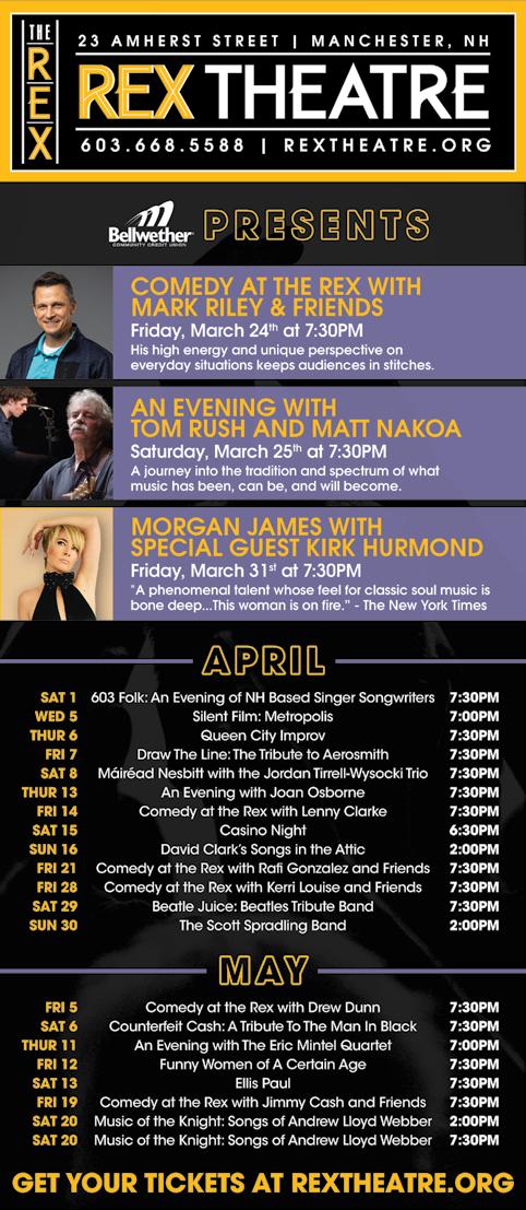 Also on the cover An upcoming spotlight on local female musicians (April 1 at SNHU) is the focus of this week’s Arts section, which starts on page 15 and also highlights theater, visual arts and classical music events this weekend. Also showcasing women in music is an event for four rising stars of the local music scene at Shaskeen in Manchester on Saturday, March 25. And speaking of rising stars, Matt Ingersoll talks to Chef Chris Viaud about his newest restaurant. This week’s food section, which starts on page 24, also takes a look at the new breakfast menu at Shaker Road Provisions in Concord.