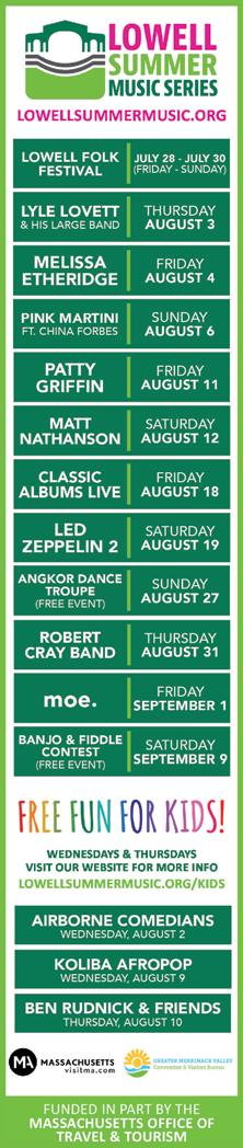 Also on the cover Speaking of tasty items at the farmers markets, Donut O’clock (page 25) is selling out of its treats when it goes to the Nashua market. Michael Witthaus looks at an effort to get indie bands on area stages (page 31). And Tuesday, Aug. 1, is National Night Out and several area towns and cities are holding family-fun events where the police and the community can meet and greet (and in some cases, there’s a dunk tank).