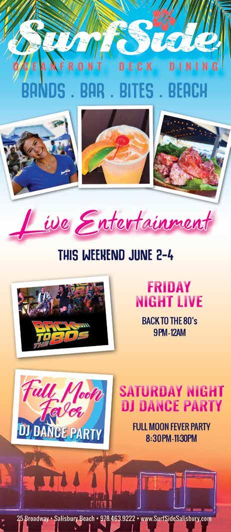 SEACOAST SCENE | JuNE 1 - 7, 2023 | PAgE 3 3 Now Open! Enjoy sprawling ocean views while dining on New Hampshire’s seacoast Seaside DINING 209 OCEAN BOULEVARD, SEABROOK, NH HOURS: SUNDAY – THURSDAY 11 AM – 9PM FRIDAY & SATURDAY 11AM – 10PM (603) 760-7500 WWW.ERNIESSEASIDE.COM Tasty SEAFOOD Sunset VIEWS 140534 Your NEW Getaway on the Bay