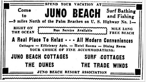 A 1944 ad from The Palm Beach Post. Courtesy of Juno Beach Historical Society