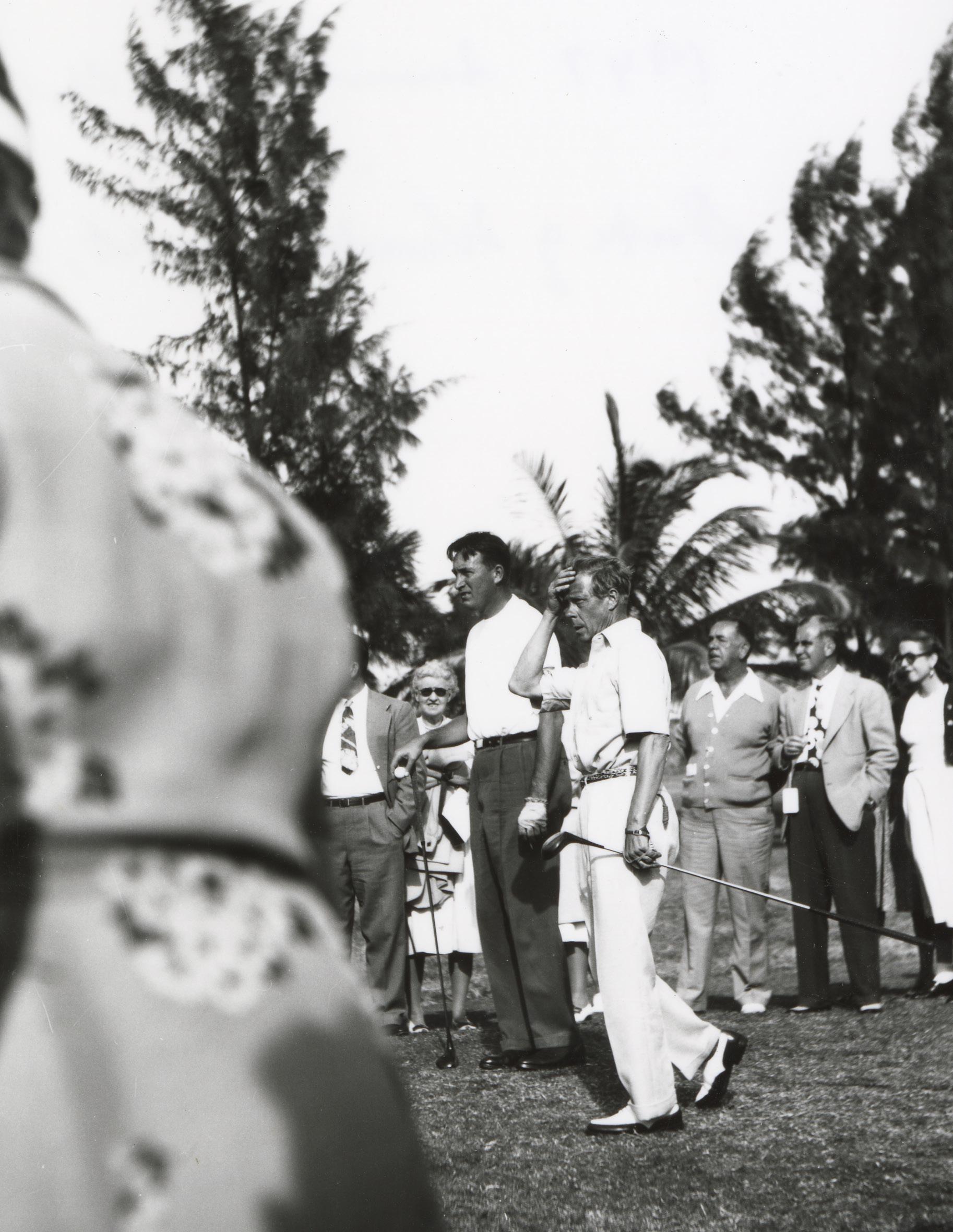 In March of 1947, an Amateur-Pro Golf Tournament attracted a prestigious crowd. The Duke of Windsor and his experienced Arkansas pro partner, E. J. “Dutch” Harrison, participated in the event, alongside influential financial and industrial tycoons from around the world. The tournament featured a two-day, 18-hole competition, with a combined prize money of $15,000 for the professional players, over $200,000 in today’s economy. Courtesy HSPBC