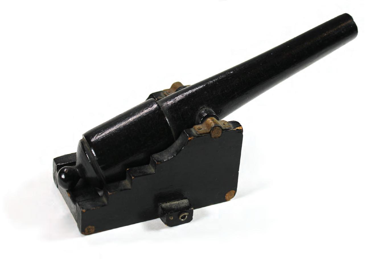 ELISHA HUNT RHODES was one of those rare Civil War soldiers who served the entire conflict from 1861 to 1865 without suffering a major injury despite serving in most of the Eastern Theater’s major engagements. Rhodes enlisted as a corporal in the 2nd Rhode Island Infantry and rose through the ranks until he was discharged as a brevet colonel of the regiment. His name has a familiar ring because Ken Burns plumbed Rhodes’ copious wartime diary for frequent quotes during the riveting PBS documentary The Civil War . This miniature cannon, which Rhodes owned after the war, was recently sold by Fleischer’s Auctions. Measuring 5 ½ inches, it was modeled after a Parrott rifle placed on a garrison or naval carriage. We are left to wonder what thoughts of desperate battle or friends long gone came to Rhodes’ mind when he gazed at the knickknack. — D.B.S.