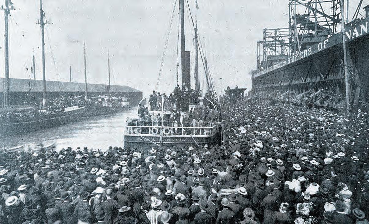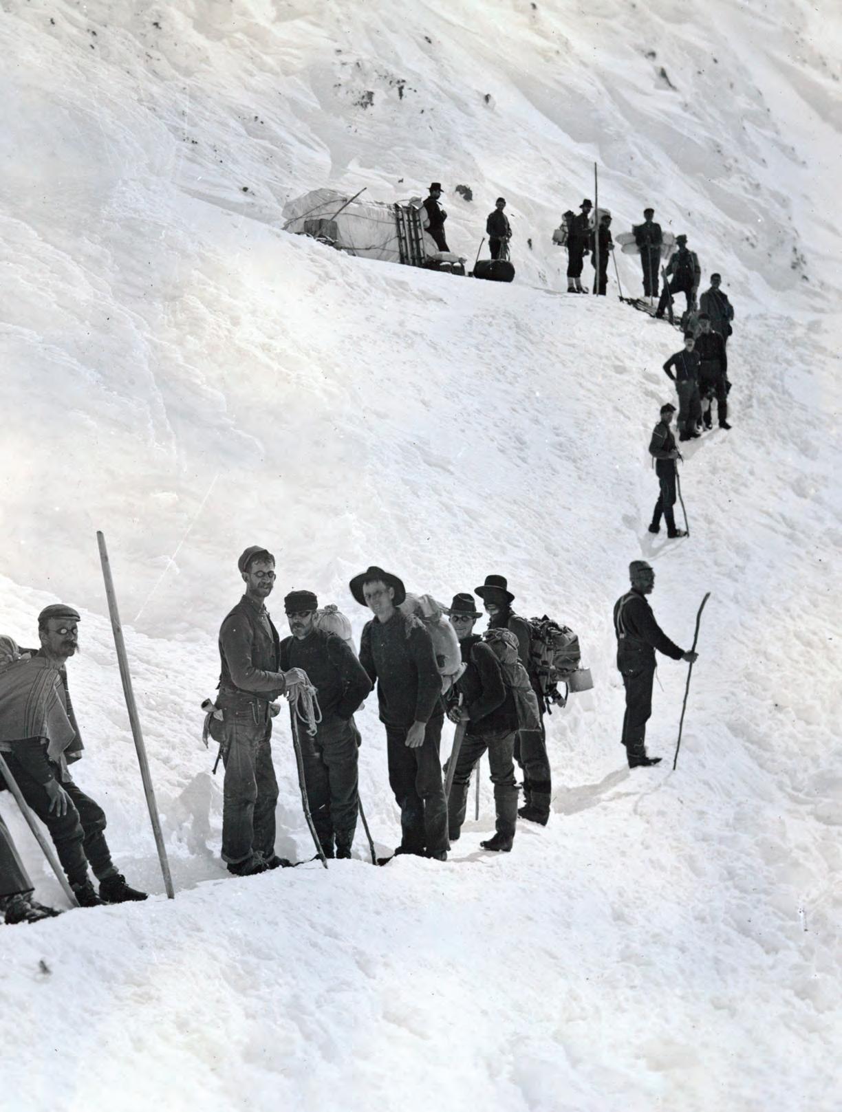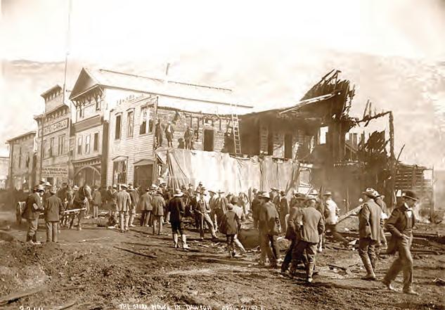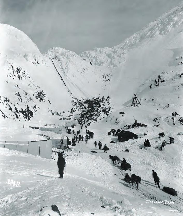 Wild West is honored by the awards and proud of our writers. Meanwhile, we’ve been hard at work. In this issue we range to the far north. In our cover story (see P. 30) Mike Coppock relates the colorful chronicles and characters of the 1896–99 Klondike Gold Rush from rough-hewn ports in southeast Alaska to northwestern Canada’s Yukon Territory. Among the betterknown figures who made their mark in the goldfields and boomtowns of the Klondike and southeast Alaska were Call of the Wild author Jack London and lawman Wyatt Earp of Tombstone, Arizona Territory, fame, whose time up north Coppock details in Gunfighters & Lawmen (see P. 20). Our Westerners profile (see P. 18) shines the spotlight on dancer and vaudeville performer “Klondike Kate” Rockwell, who whirled her way into prospectors’ hearts and beguiled them out of their gold dust. Finally, Go West (see P. 80), the destination page that closes each issue, features then-and-now maritime images of Alaska’s Inside Passage, the embarkation point for most Klondike prospectors.