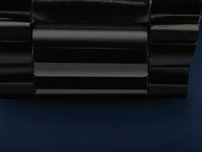 This black genuine leather bracelet is hand-crafted of solid stainless steel and ion-plated 24K-gold accents, and features an impressively sized genuine turquoise cabochon at the center. One of the oldest stones known to man, and used extensively in jewelry from America’s Southwest, it makes a strong statement along with the images of American bison.