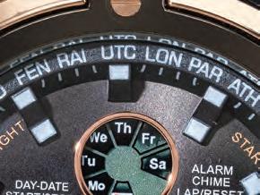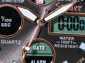 Out tted with a stopwatch, alarm, a.m./ p.m. settings, and day, date and month complications, this timepiece stands out from the crowd. With its large face and handsome, masculine design, this watch is perfect for the back nine and the happy hour afterwards. Water-resistant up to 3 ATM, this timepiece won’t wimp out if you have a run-in with a water hazard.