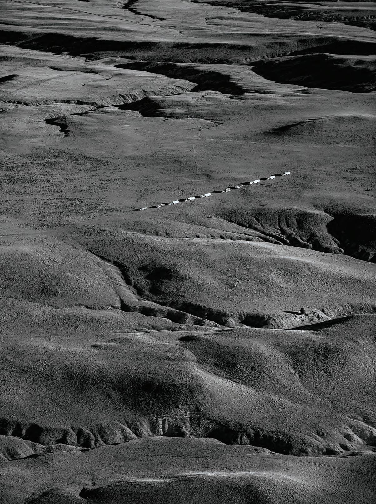 Follow the Wagon Ruts: The ranch itself inspired every photograph in the book. “It’s the scale of the land, the sky, the air we breathe and mother nature,” Anouk says. “The land came first, and then we came. To me it’s very important. I think that is what still inspires people from around the world to connect with the American Western landscape.” In the 1800s hundreds of thousands of emigrants drove and followed covered wagons across these foothills along the Oregon, California and Mormon trails. The ranchers who staked claims after approval of the 1862 Homestead Act and the cattleman who trailed the first herds north from Texas into Wyoming also used wagons to haul food and supplies. Wagonhound’s true expanse is revealed above, as pickups and horse trailers crossing the ranch in line seem like child’s toys.