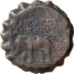 Rx: Siva facing, holding diadem and trident; behind, the bull Nandi standing l. Alram-29; Göbl, Dokumente, Issue-85; Vondrovec-85c. Near Mint State 850