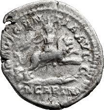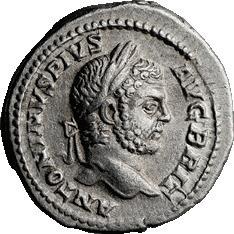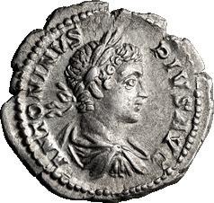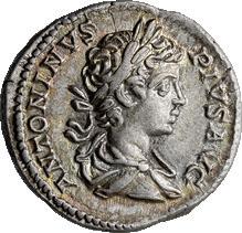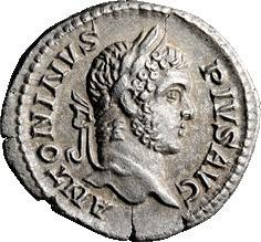 draped and cuirassed bust type. Reverse flatly struck. EF 175 67. CARACALLA; 198-217 AD, Rome, 204 AD, Denarius, 3.13g. Cf. BM-280, pl. 34.3. Obv: ANTONINVS - PIVS AVG Head r. Rx: INDVLGENTIA AVGG around, IN CARTH in exergue, Dea Caelestis, head r. and holding thunderbolt and scepter, riding r. on lion above water flowing from rocks. Ex Curtis L. Clay Collection; acquired from Ignasi Serrahima, March 2021. Earlier ex Freeman & Sear, MBS 17, 15 Dec. 2009, lot 467 (A. Lynn Coll.) and CNG 47, 16 Sept. 1998, lot 1809. This head laureate bust type of Caracalla was used only briefly on his denarii in 204 AD, with the reverse types INDVLGENTIA AVGG IN CARTH and VICT PART MAX, before becoming his standard bust type on denarii from late 206 AD on. Toned EF 375