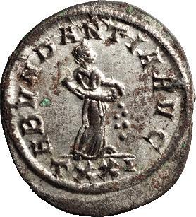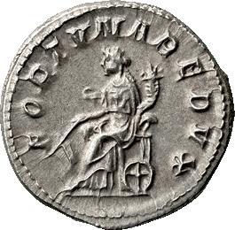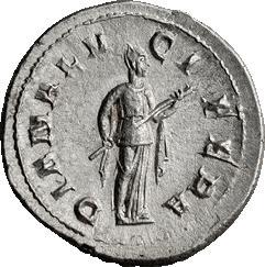 21. CARACALLA; 198-217 AD, Rome, 217 AD, Antoninianus, 2.78g. BM-199, pl. 73.5; C-648 (Paris, 8 Fr.); RIC-297d. Obv: ANTONINVS PIVS AVG GERM Bust radiate, draped, cuirassed r. Rx: VIC PART in exergue, P M TR P XX COS IIII P P around, Victory seated r. on cuirass and shield, inscribing VO / XX on shield that she balances on her knee, trophy and two seated captives to r. Very rare; only about ten specimens recorded, none in Reka Devnia hoard. Commemorates Caracalla’s successful raid into Parthia and the upcoming twentieth anniversary of his accession in January 218, which he did not live to celebrate. VF 600 Rare Frontal Bust Type