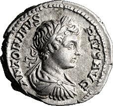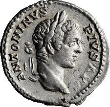71. CARACALLA; 198-217 AD, Rome, 204 AD, Denarius, 3.37g. BMC-p. 261, f (citing Reka Devnia, p. 116, 1 spec.). Obv: ANTONINVS - PIVS AVG Head laureate, r. Rx: VICT - PART - MAX around, Victory advancing l., holding wreath and palm. Ex Curtis L. Clay Collection; ex Dionysos, eBay, 13 Nov. 2011. This lot, like lot 67 above and lot 72 below, employs a very rare Head Laureate only bust type, that appeared briefly on Caracalla’s denarii in 204 AD with the reverse types VICT PART MAX and INDVLGENTIA AVGG IN CARTH, at a time when his standard obverse types on denarii were either bust laureate, draped or bust laureate, draped and cuirassed. MS 550