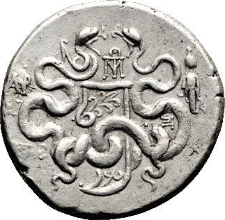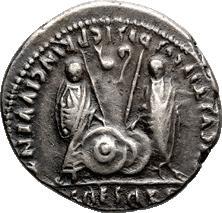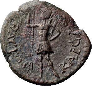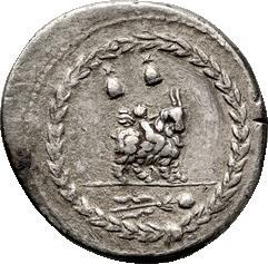 rare type with this obverse legend: not represented in Reka Devnia hoard, not in BM by 1975 or in Paris by Cohen’s day, cited by Cohen from a French private collection. From the same dies as the preceding coin in this sale. Planchet irregularities. gVF 200