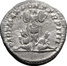 59. CARACALLA; 198-217 AD, Rome, 202 AD, Denarius, 3.12g. BM-p. 385, 163, pl. 64.13 (same rev. die). Obv: ANTONINVS - PIVS AVG Bust laureate, draped, cuirassed r. (or just draped). Rx: PART MAX P - M - TR P X around, Trophy between two seated captives. Ex Curtis L. Clay Collection; ex Ancient Auction House, eBay, 9 Jan. 2007. A rare mule: the reverse legend with P M and TR P X was meant for obverses of Septimius not Caracalla. From the same reverse die as the following lot in this sale. EF 400