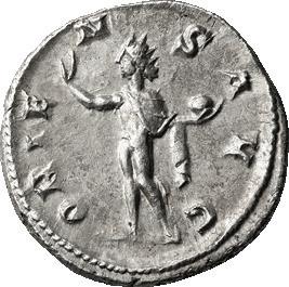 1. CARACALLA; 198-217 AD, Rome, 204 AD or later, Quinarius, 1.25g. King-p. 348, 6 (5 spec.), pl. 20 and pl. H (same dies). Obv: ANTONINV[S] - PIVS AVG Head laureate r. Rx: [N]OBI - LITAS to l. and r., Nobilitas standing r. holding statuette and scepter. Ex Curtis L. Clay Collection; ex CNG E240, 8 Sept. 2010, lot 393. On aurei, denarii, sestertii, and middle bronzes, this Nobilitas reverse type was struck for Geta only, probably in 204 AD, and not also for Caracalla, as on this silver quinarius. Very rare. Obverse has ancient gilding. Light hairline on cheek. aEF 1650