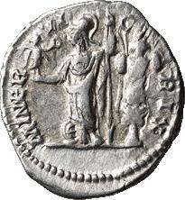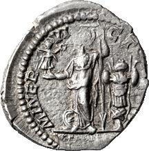 31. CARACALLA; 198-217 AD, Rome, 198 AD, Denarius, 3.07g. Cf. BM-107, C-159, and RIC-25b. Obv: IMP CAE M AVR ANT - AVG P TR P Bust laureate, draped, cuirassed (?) r. Rx: MINER - VI - CT - RIX Minerva standing l. holding Victory and reversed spear, usual shield at feet omitted, trophy behind. Ex Curtis L. Clay Collection; ex Gitbud-Naumann, eBay, 24 Sept. 2015. Rare variant omitting the usual shield at Minerva’s feet, probably just by engraver’s error. Virtually MS 185