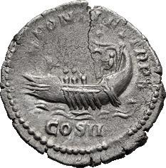 48. CARACALLA; 198-217 AD, Branch Mint, After c. 202 AD, Denarius, 3.51g. Cf. BM-267, pl. 33.14. Obv: ANTONINVS - AVGVSTVS Bust laureate, draped r. Rx: ADVENT AVG - G, Imperial galley proceeding l. through waves; at stern of galley, the three emperors seated l. under an arch, an officer on deck facing the emperors, and two standards above and behind the emperors; at prow of ship, a small sail on a slanted mast. Ex Curtis L. Clay Collection; purchased from Barry Murphy, Nov. 2010. In competent style and decent metal, but perhaps a little cruder and baser than the standard Rome-mint coin, and also showing a hybrid legend combination, since the correct obverse legend for Caracalla’s ADVENT AVGG reverse type would have been ANTONINVS PIVS AVG rather than ANTONINVS AVGVSTVS. Possibly from a branch mint, copying Roman types in order to meet a financial need in a Roman province, without having to transport the coins from Rome? . EF 875