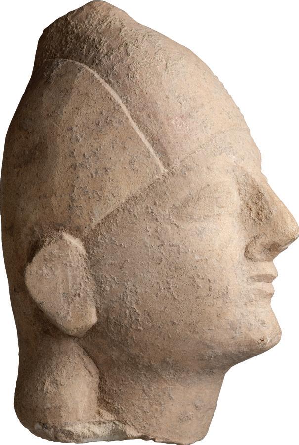 590. CYPRIOT EARLY CYPRO-GEOMETRIC BICHROME JUGLET, ca. 1000 BC. Red ware with one handle; white painted body decorated with black rings on the neck and three concentric circles on the body. De-accession from the Cyprus Museum of Jacksonville, North Carolina, acquired legally with the knowledge of the Cypriot Government; likely ex Cesnola Collection. H. 3 5/8” (9.2 cm) 1250 591. APULIAN RED-FIGURE VASE FRAGMENT, ca. 4th Century BC. Fragment of partial horsehead and riders hand. Provenance: Estate of artist Philip Pearlstein (1924-2022), New York.