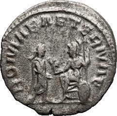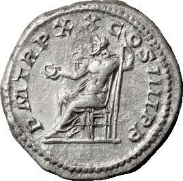 11. CARACALLA; 198-217 AD, Rome, 217 AD, Antoninianus, 4.90g. BMC-189 note, citing C-386. Obv: ANTONINVS PIVS AVG GERM Bust radiate, draped, cuirassed r. Rx: P M TR P XX - COS IIII P P on l. and r., Serapis wearing polos (small and indistinct) on head, seated l. on throne, holding wreath and wheat ear (?) in r. hand and vertical scepter in l. Ex Curtis L. Clay Collection; acquired from W. Phillips List 254, May 2000, no. 213. An unusual reverse type, and rare; only one specimen in Reka Devnia hoard. Toned EF / VF 400