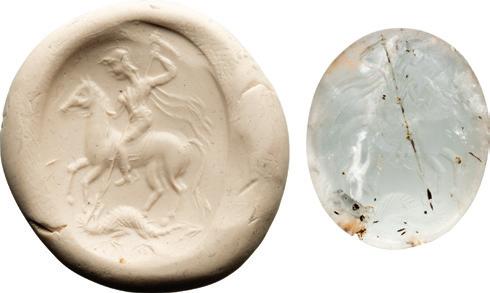 625. ROMAN ROCK CRYSTAL INTAGLIO, ca. 1st-3rd Century AD. Perseus slaying the Cetus (sea monster). L. 1 1/8” W. 15/16” (2.3 cm x 2.4 cm)