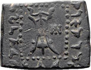 Ex Numismatic & Ancient Art Gallery AG, late 80s-early 90s. H. 4 7/8” W. 3 1/2” (12.4 cm x 8.9 cm) H. with base 7 3/8” 1850 WEAPONS