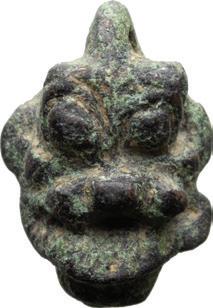 635. PHOENICIAN RAM’S HEAD PENDANT, ca. 4th-3rd Century BC. Suspension loop intact. L. 3/4” W. 1/2” (1.9 cm x 1.3 cm)