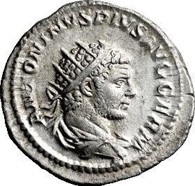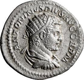 14. CARACALLA; 198-217 AD, Rome, 217 AD, Antoninianus, 3.79g. BM-187, pl. 72.17. Obv: ANTONINVS PIVS AVG GERM Bust radiate, cuirassed r., seen from front. Rx: P