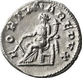 42. CARACALLA; 198-217 AD, Rome, 199 AD, Denarius, 3.32g. BMC-p. 284, * (citing Atti et Memoria, 1925, p. 66; misattributed to the New-Style mint, rather than Rome). Obv: IMP CAES M AVR - ANTON AVG Bust laureate, draped r. Rs: FIDES P - VBLICA on l. and r., Fides standing r., holding two wheat ears and plate of fruit. Apparently a rare type combination, not represented in the Reka Devnia hoard. EF 200