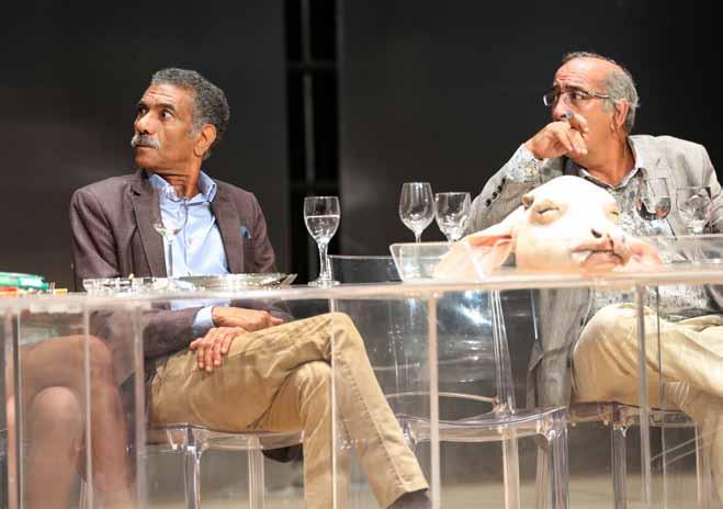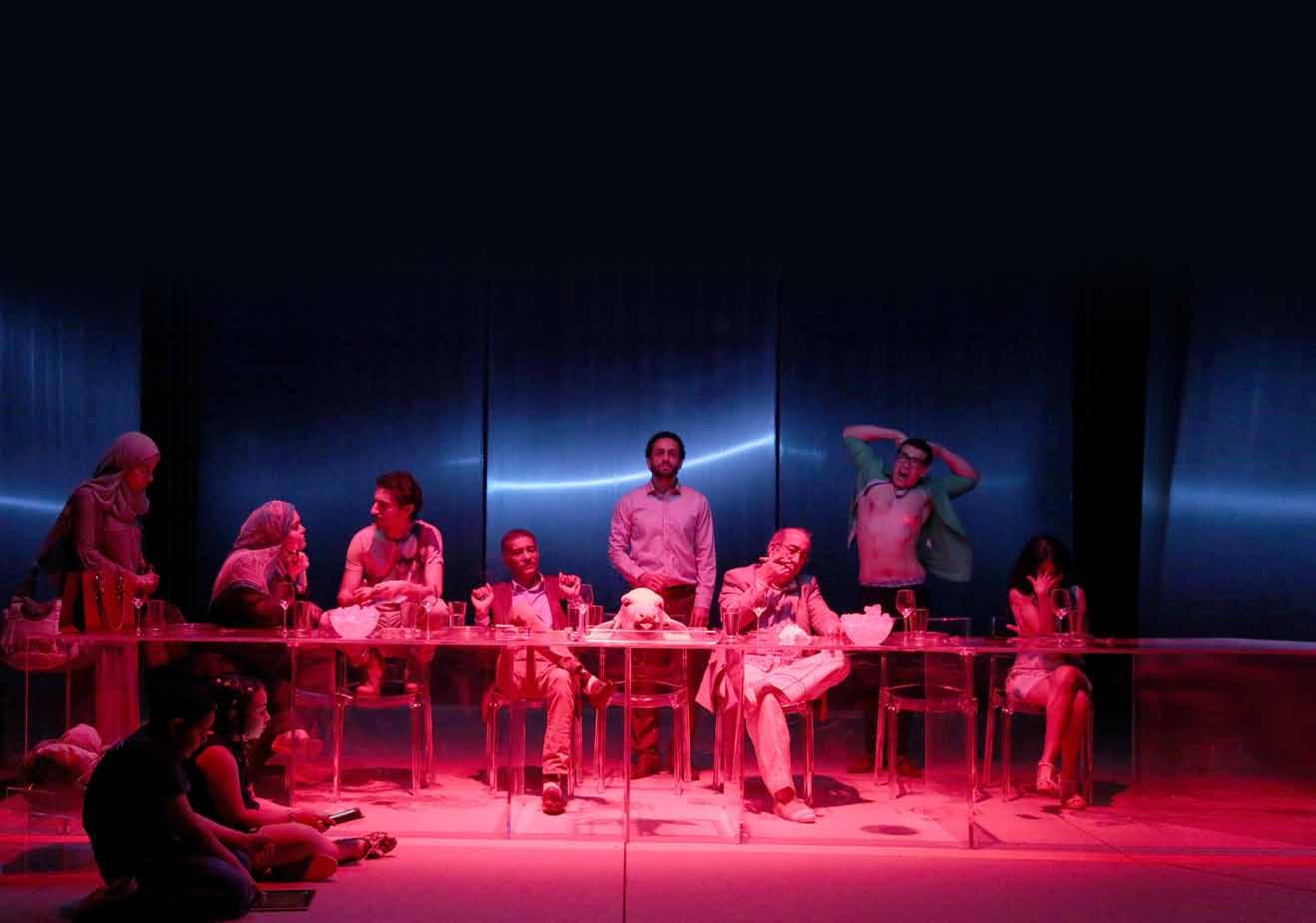 在艾雅塔的《埃及式最後晚餐》裏一個富裕的埃 及家庭圍坐在餐桌旁。他們儘管侃侃而談,桌上 卻是一頓虛無、荒誕和冷漠的盛宴。劇中由十一 位演員飾演的十三個角色,各有一套自以為是、 充滿成見的哲學,演活了當代埃及中產階層的樣 板例子。
