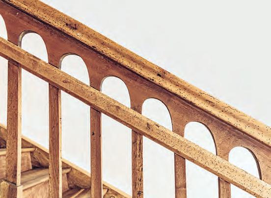 Die sorgsam restaurierte Holztreppe im Wohnhaus