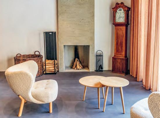 Wir waren zuständig für die Restaurierung der historischen Putzoberflächen im Treppenhaus, in den Korridoren und für die Neugestaltung der Schlaf- und Badezimmer und die Stallscheune, das Waschhaus und selbstverständlich das neue Hofhaus. Für die Oberflächen in den Schlafzimmern haben wir dem Sumpfkalk Rheinsand beigemischt, sodass ein grauer Farbklang entstanden ist. Denn es ist belegt, dass hier in der Region einst mit Sand aus dem Rhein gearbeitet wurde. Wichtig war uns, dass die Putzoberfläche in den Zimmern nicht zu homogen und perfekt wird.