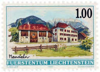 Zwei Briefmarken, ein Hagenhaus: Die Bilder zeigen die Postexpedition Nendeln 1864 sowie die Hofstätte an der Feldkircherstrasse im 20. Jahrhundert. Bilder: Liechtensteinisches Landesmuseum