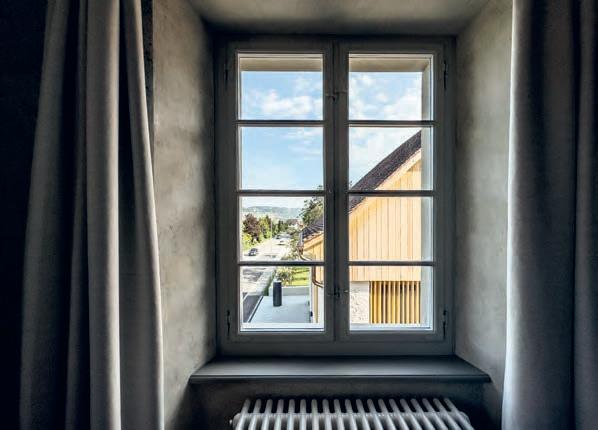 Die Fenster aus der Erbauungszeit erfüllten die bauphysikalischen Anforderungen nicht. Bei der Gestaltung der neuen Fenster orientierten wir uns am Erscheinungsbild und der Bauweise der Substanz. Drei gut erhaltene Fenster wurden restauriert und wieder eingebaut, um die ursprüngliche Bauweise zu veranschaulichen. Als Schreiner, der sich auf die Restaurierung historischer Objekte spezialisiert hat, ist mir der Erhalt originaler Substanz wichtig. Darum habe ich mich gegen die einmal geplante Bodenheizung eingesetzt. Mit einer Bodenheizung hätten wir alle Böden sechs Zentimeter anheben müssen, was Konsequenzen für alle Türen, Raumhöhen und Treppenanschlüsse gehabt hätte. Ich bin froh, können die Räume nun ihre ursprüngliche Wirkung entfalten. » Sigi Korner, Holzrestaurator, Anstalt für Holzrestaurierung