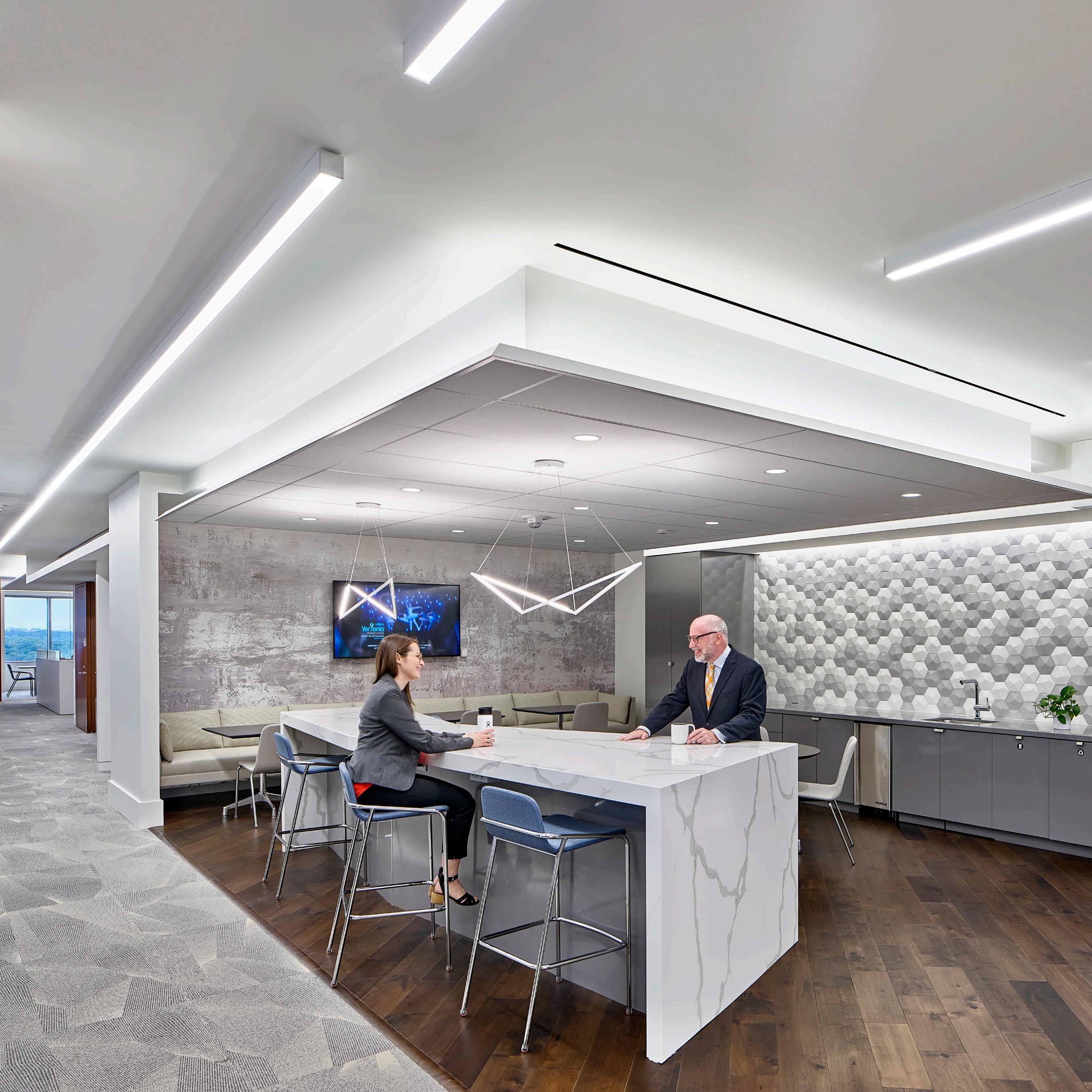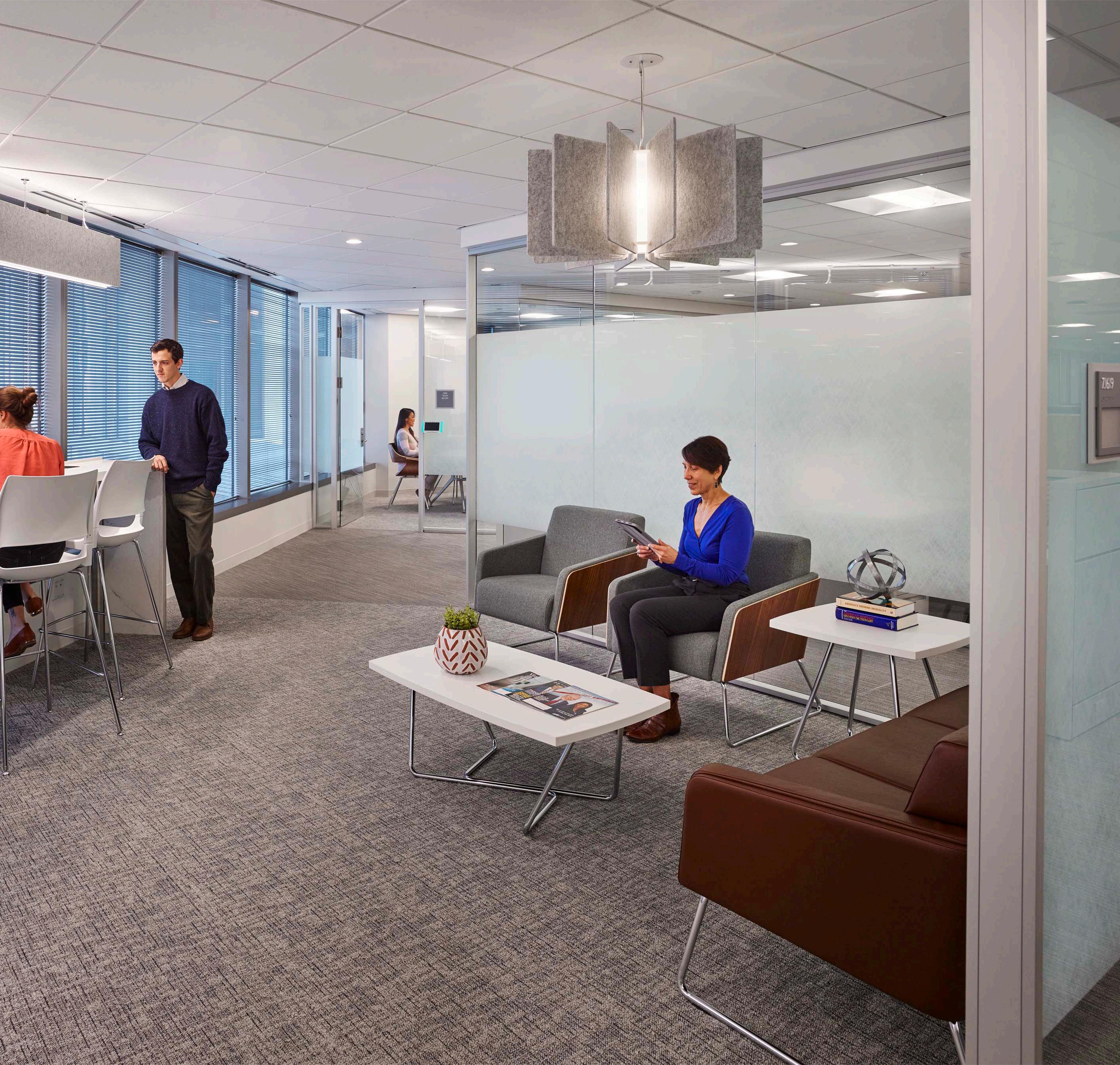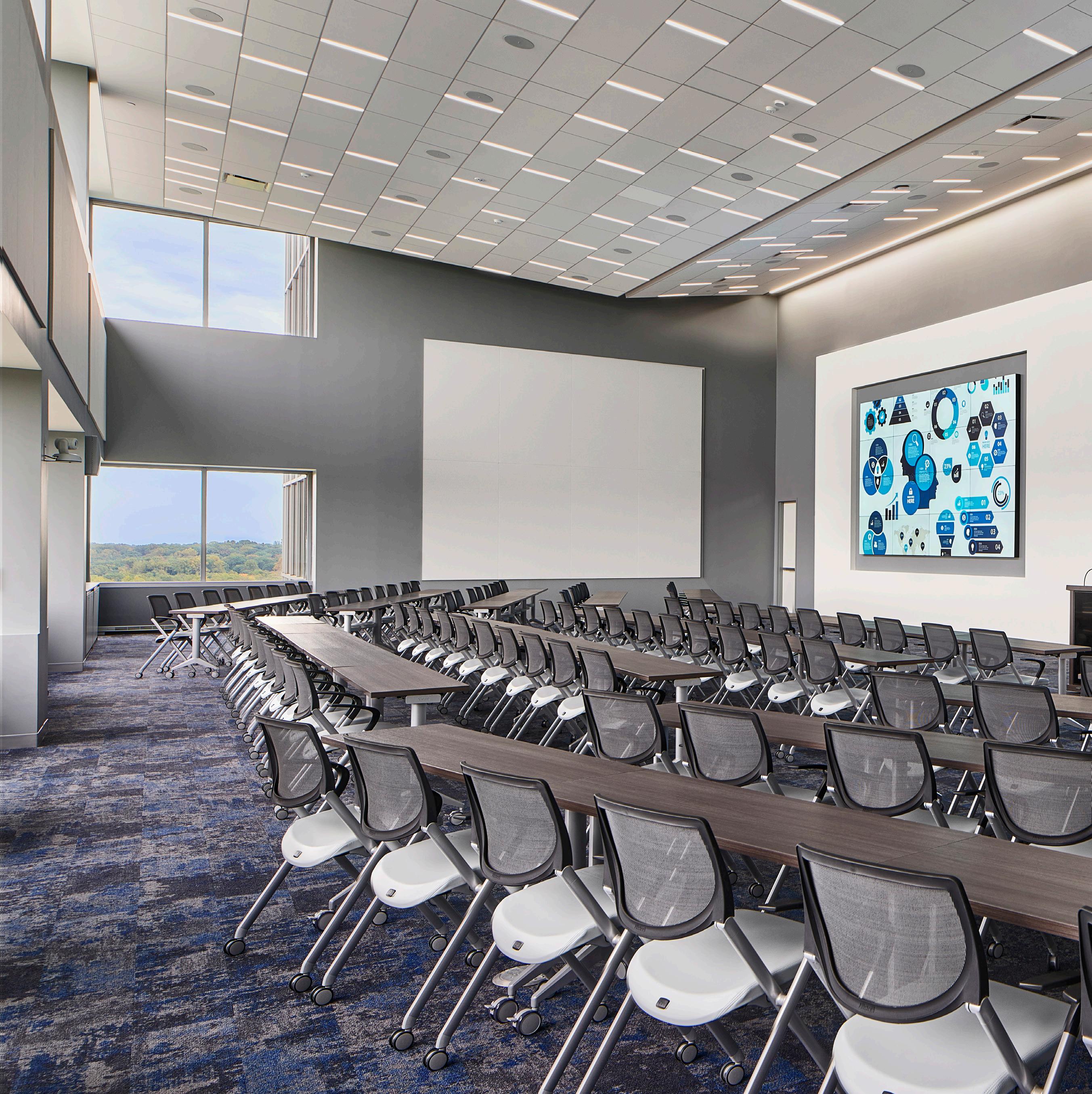 Transforming the headquarters buildings into a new enterprise leadership hub was achieved by making the best match of function to building configuration and providing flexibility to help staff transition to a new way of working. Executive huddle rooms, equipped for dual use as meeting space and private office, and two person huddle rooms were placed adjacent to the open work areas allowing for enclosed impromptu collaboration and privacy. Workstation clusters were planned to be highly flexible in both function and design with each desk offering height adjustability and plug and play capabilities.