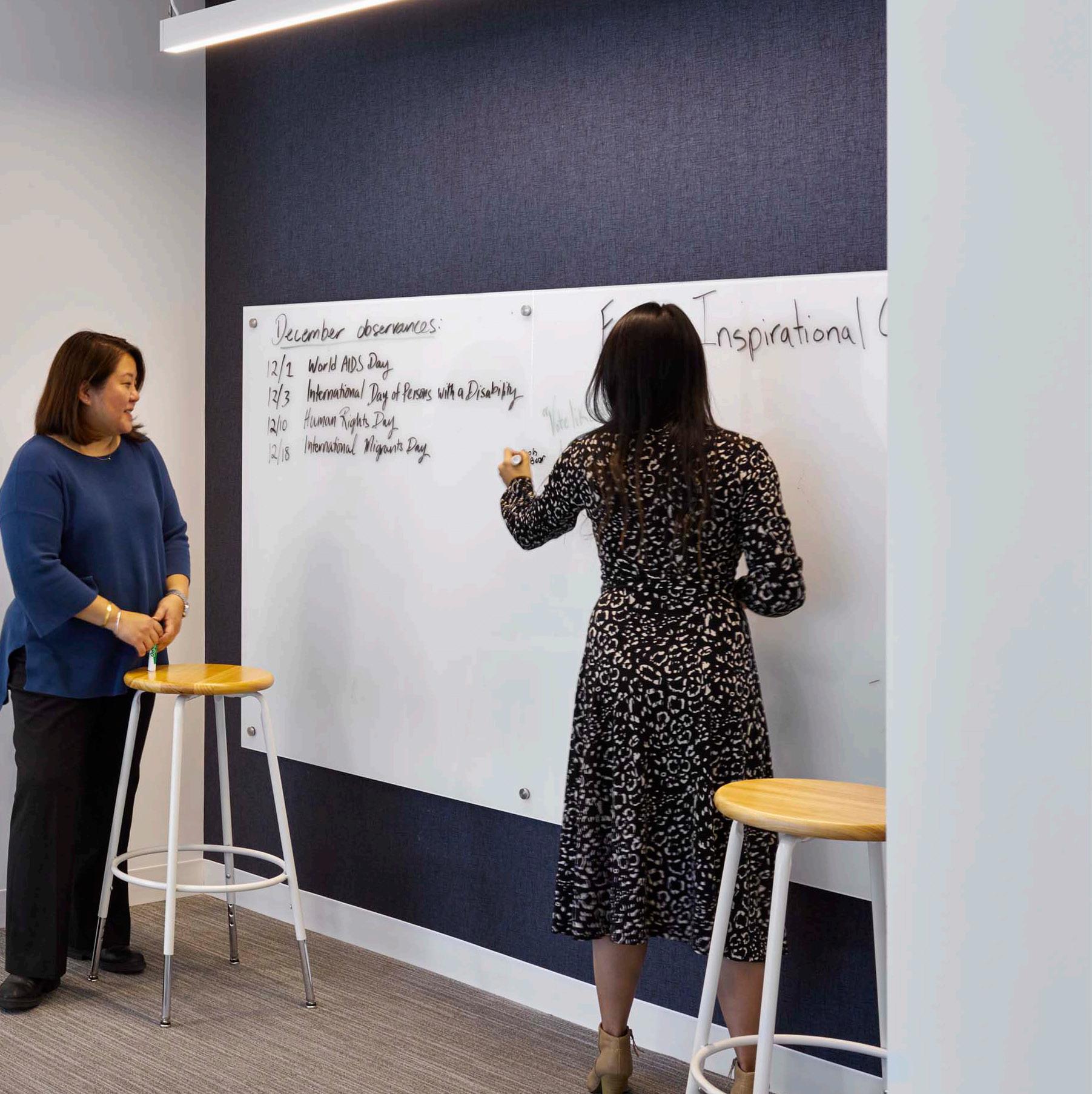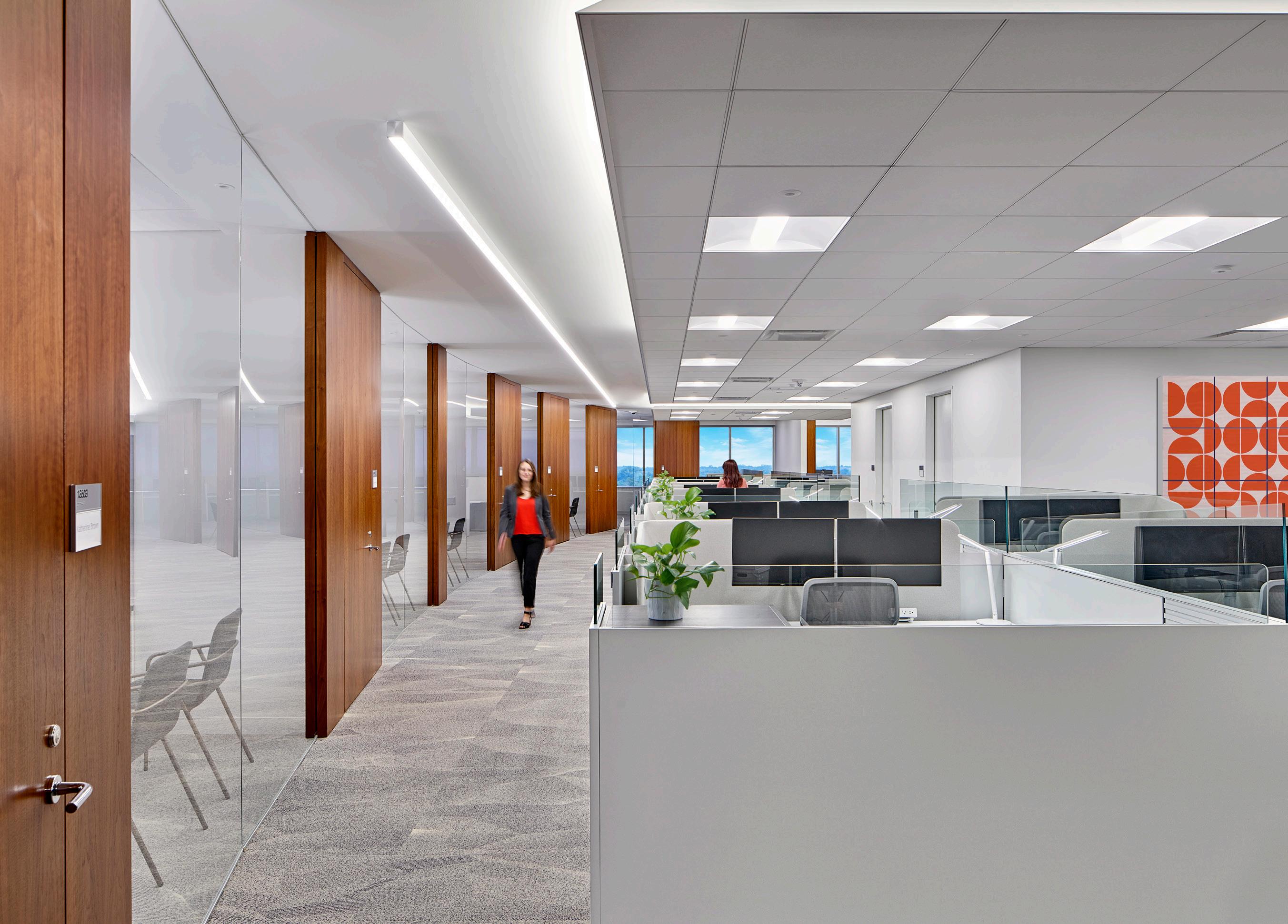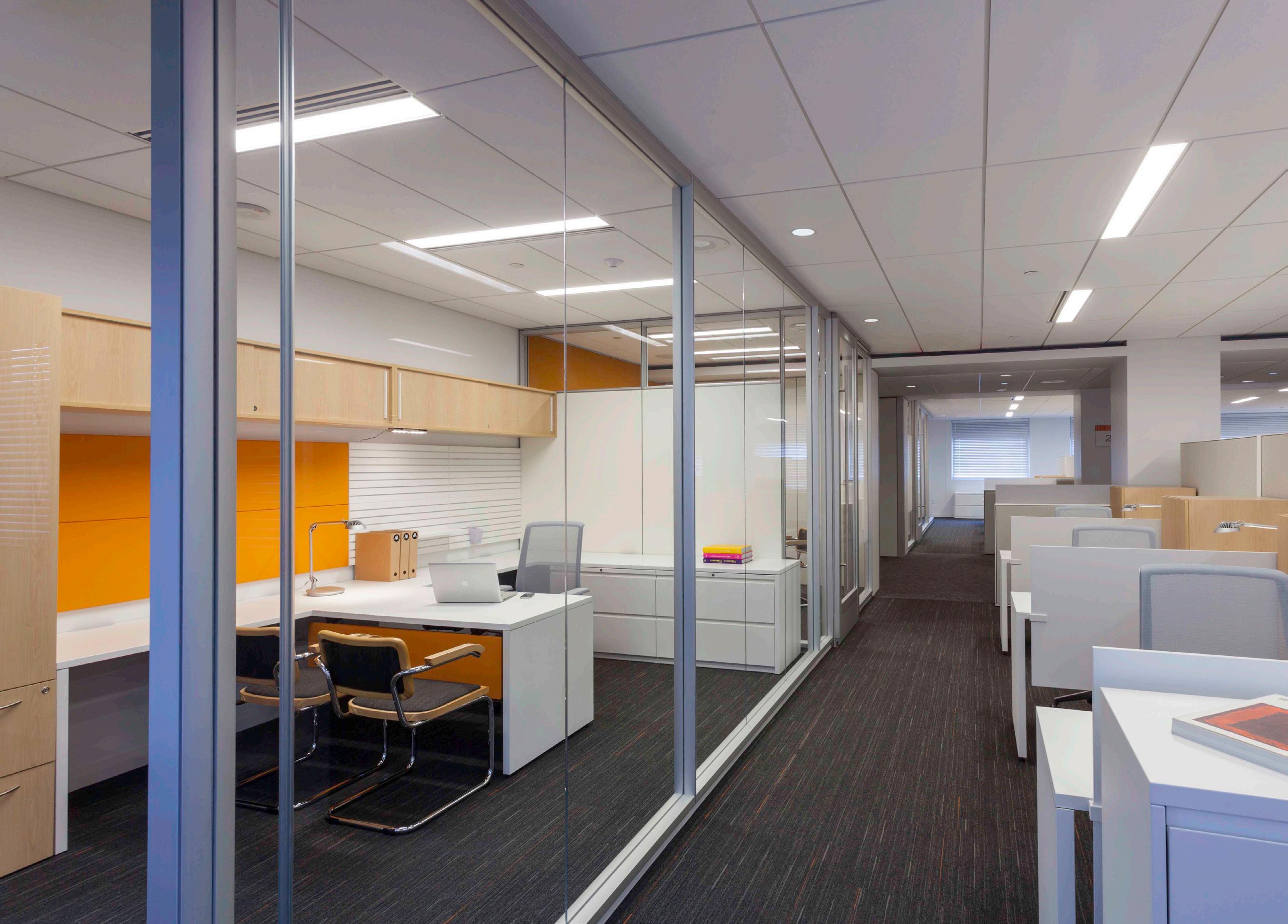 Transforming the headquarters buildings into a new enterprise leadership hub was achieved by making the best match of function to building configuration and providing flexibility to help staff transition to a new way of working. Executive huddle rooms, equipped for dual use as meeting space and private office, and two person huddle rooms were placed adjacent to the open work areas allowing for enclosed impromptu collaboration and privacy. Workstation clusters were planned to be highly flexible in both function and design with each desk offering height adjustability and plug and play capabilities.