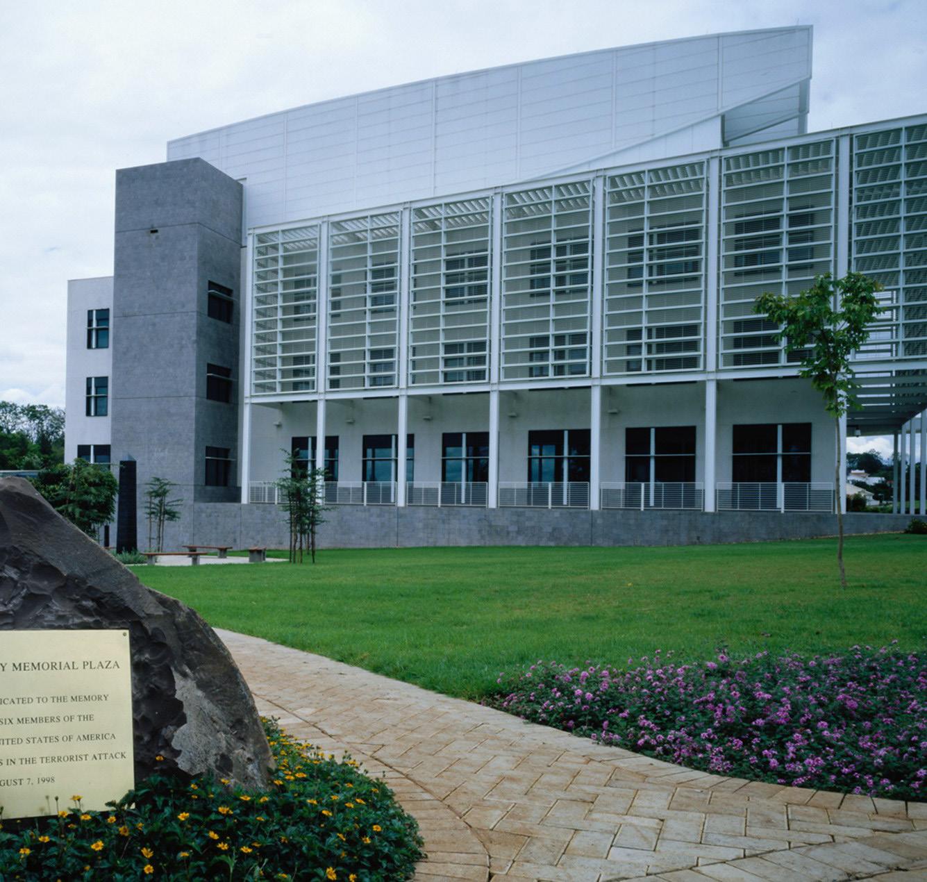 Born out of a commitment to political and cultural sensitivities, this New Embassy Compound (NEC) is located in Dar Es Salaam, Tanzania. The compound includes an 66,000 sq. ft. office building and several smaller support buildings. The design criteria required that the facility incorporate traditional architecture and environmentally sensitive building materials and provide an image fitting for the United States’ representation in a foreign country.