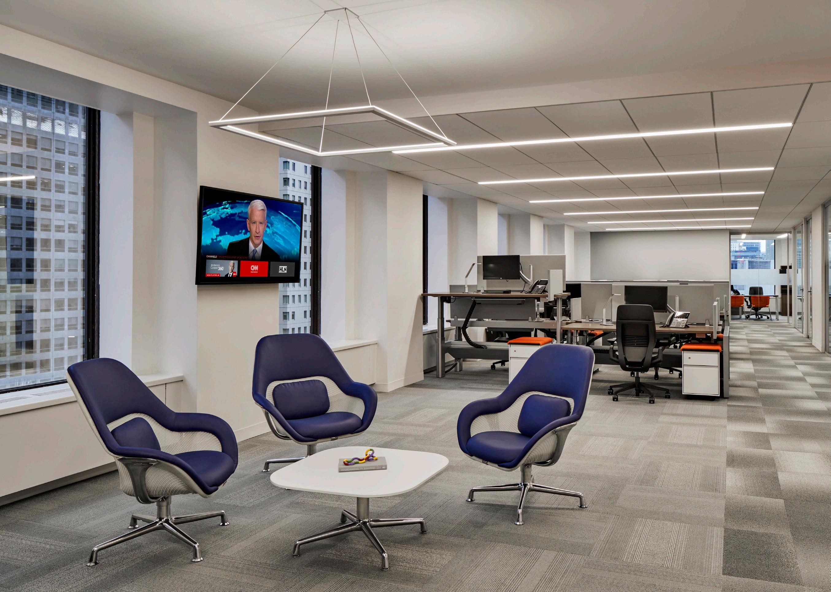 Inspired by their 100 year anniversary, this confidential government contractor aimed to showcase their longevity and innovation in a design for their New York office. HOK worked closely client management and senior partners to create an environment that balanced collaboration and privacy, as well as timelessness and progression. To marry these contrasting ideas, HOK developed the floor plan with a mixture of private offices and hoteling on the exterior. Collaboration areas interject these work spaces, acting as nodes of interaction for employees and catalysts for natural light. The dispersal of program also allows for universal views of the New York skyline. The mixture of work spaces transitions the employees from traditional enclosed offices to shared offices and hotel benching. The plan also has a variety of collaboration areas ranging from small privacy booths to larger war rooms, as well as the main collaboration area, the “HUB”.