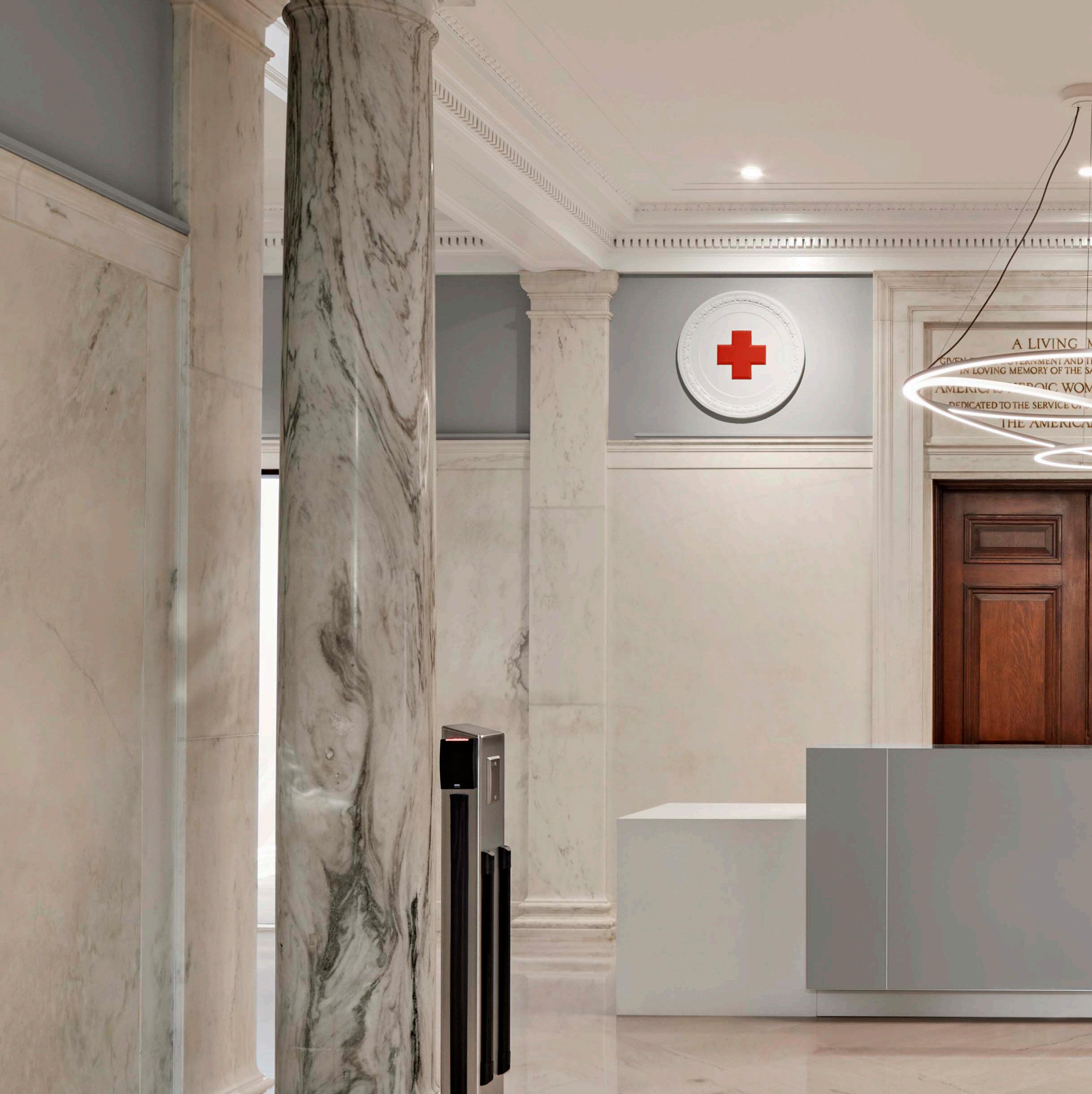 Celebrating their rich history while advancing a new workplace strategy and reducing overall real estate footprint were guiding principles for the renovation of the American Red Cross’s (ARC) Washington, DC headquarters. Creating a next generation workplace within three historic buildings posed unique aesthetic and functional challenges requiring solutions that provide a balance between honoring historic details and implementing sleek, modern elements.