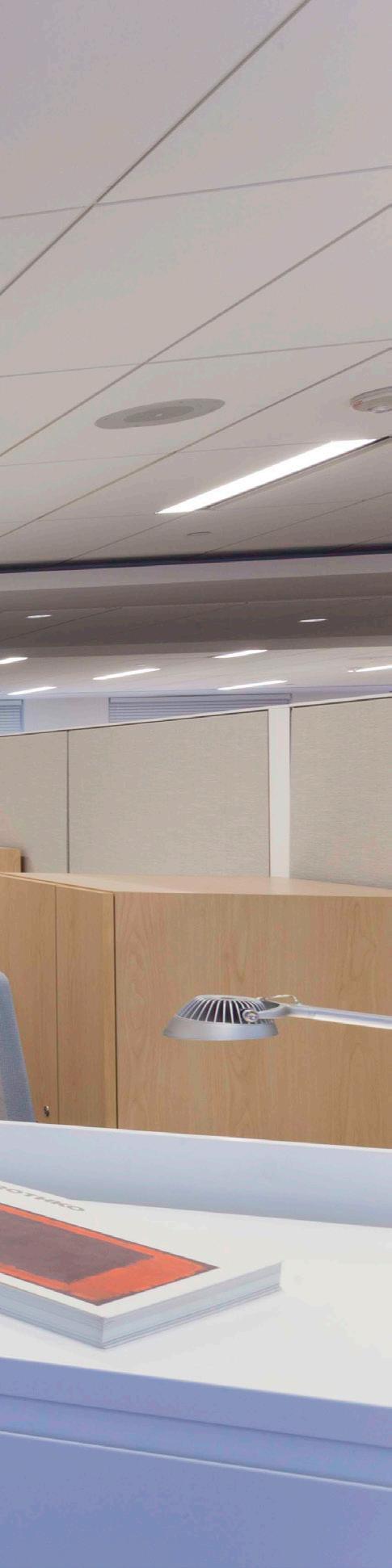 Occupancy and photo sensors help regulate interior lighting, while manually controlled interior shades prevent glare. Combined with lower ambient light levels and task lighting, the design greatly reduces the building’s overall lighting power density and energy use.