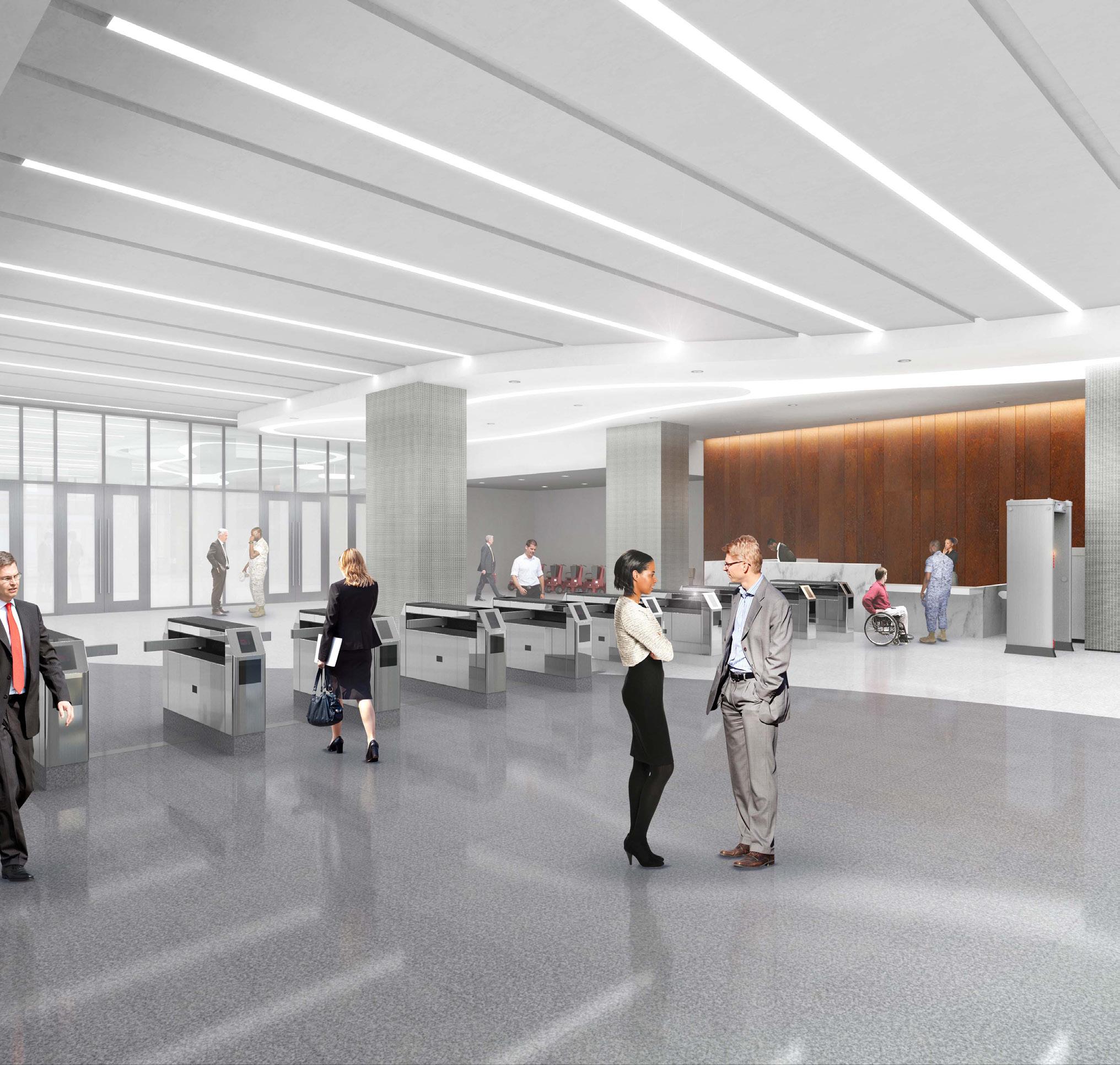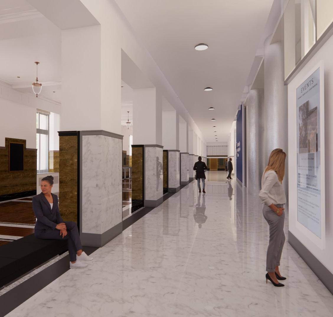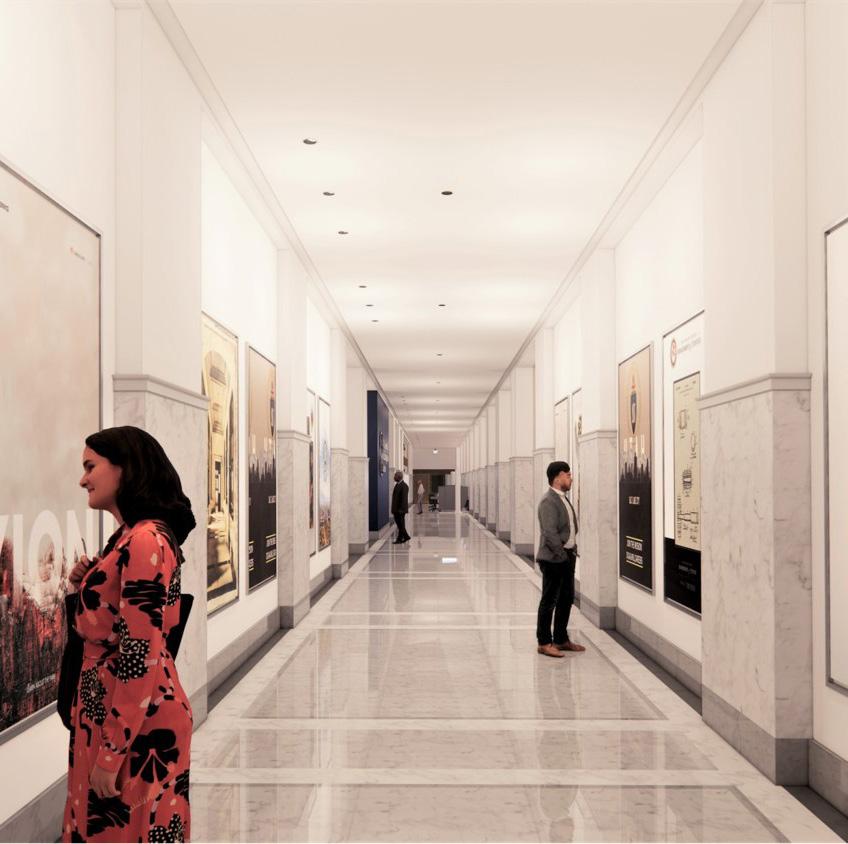 New technology was selected to work within this context, including minimal infrared security gates and ceiling grid mounted LED strip lights to maximize ceiling heights below shallow plenums. Subtle new finishes and fixtures were selected throughout all three buildings to highlight the beautiful architectural detailing while providing modern upgrades to base building systems.