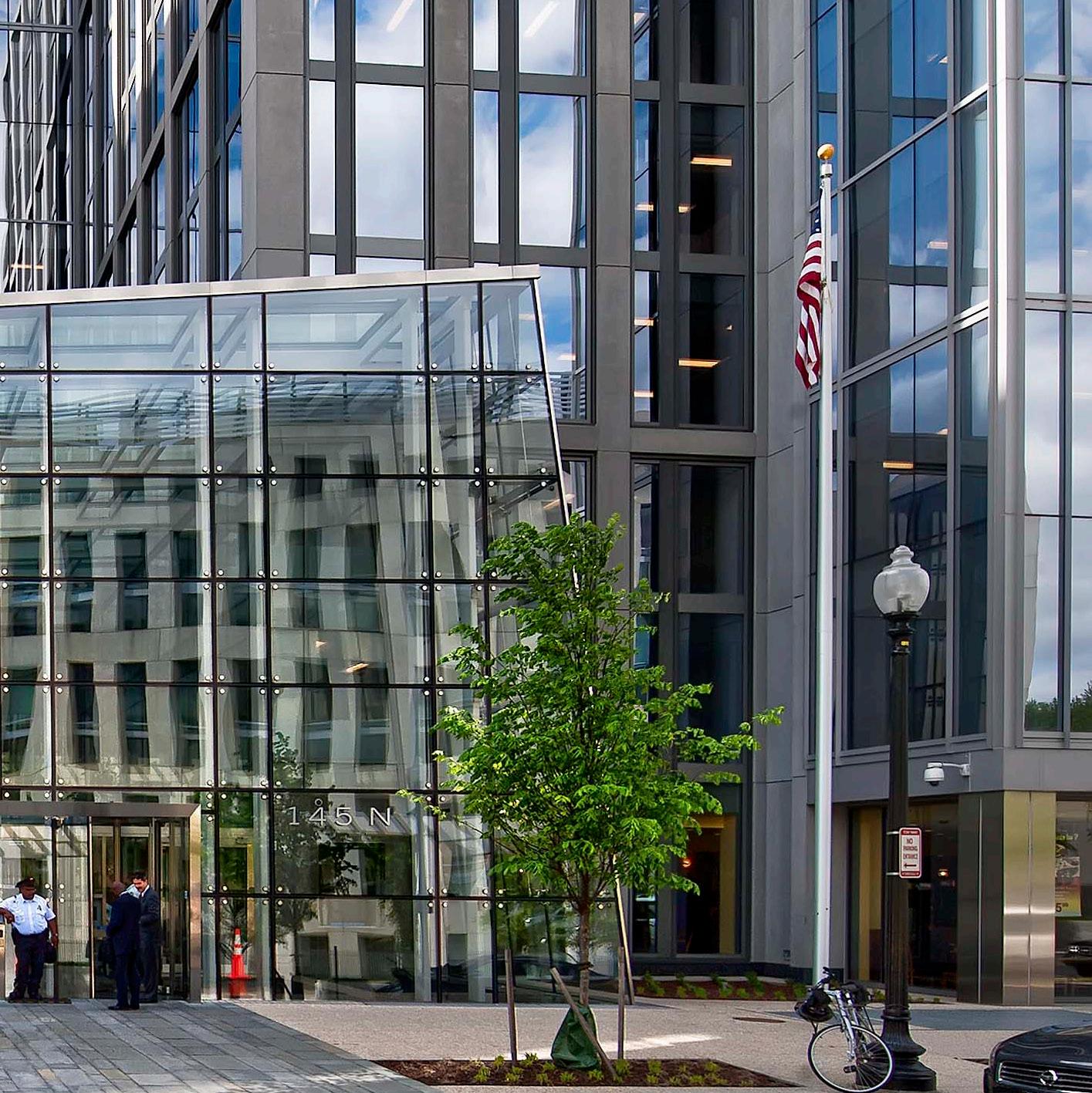 One Constitution Square accommodates public sector tenants and offers a partially enclosed rooftop terrace with panoramic city views. Two Constitution Square incorporates several Sensitive Compartmented Information Facility (SCIF) rooms and on-site amenities for 2,000 Department of Justice employees.