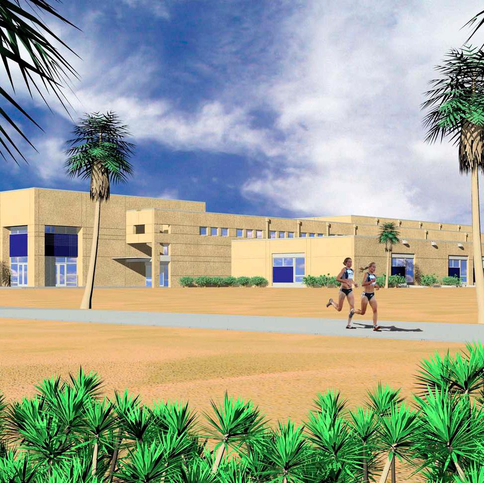 The 111,900 SM of facilities include: nine dormitories providing housing for over 2,000, dining facilities, a fitness center, a medical facility, a community mall, a fire station, and site security related facilities and systems.