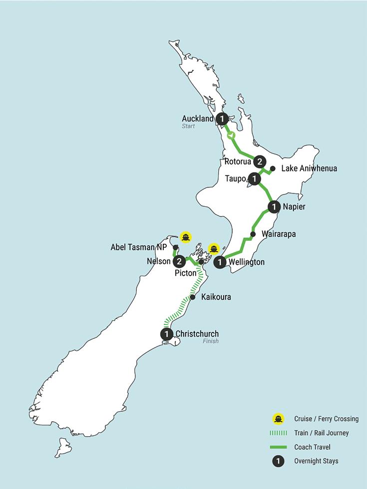 Day 1 - Arrival Day to Auckland (D) Haere Mai and Welcome to Aotearoa/New Zealand. The first stop on your adventure is Tāmaki Makaurau/Auckland, the largest city in New Zealand. On arrival in the city, make your way to the Nesuto Stadium where you’ll receive a welcome letter with some tour information, and this evening you’ll meet your group and welcome host at 6:15pm and head for a delicious welcome dinner at 6:30pm.
