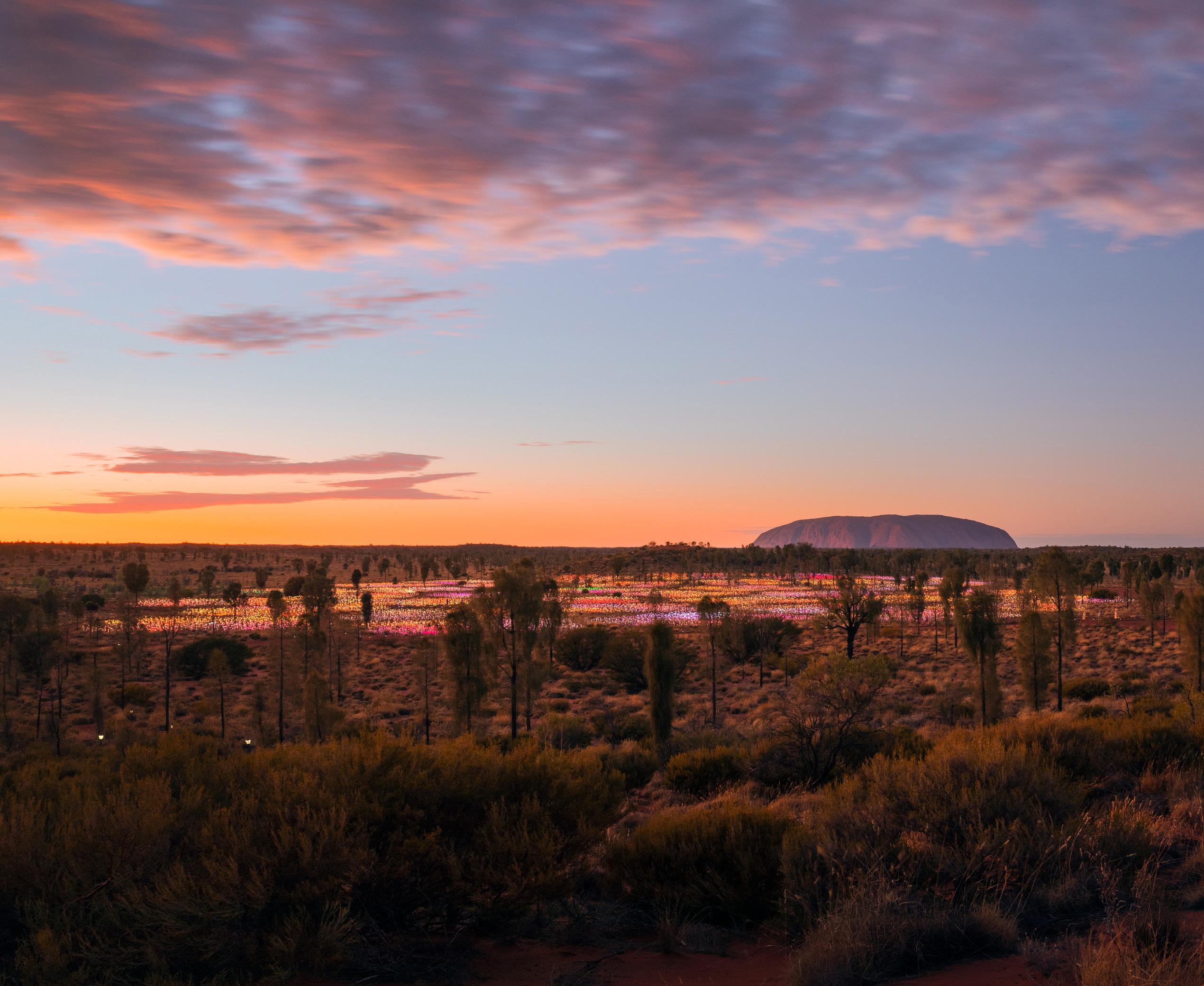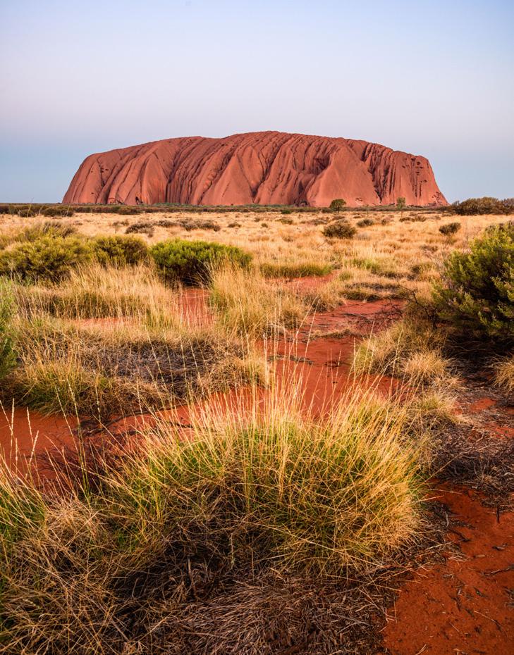 In the afternoon, journey towards the base of Uluru, where your guide will take you to the entrance of Mutitjulu Waterhole – a semi-permanent watercourse nestled in the contours of Uluru. Here you will learn several Tjukurpa (Creation) stories. You will see the rock art of the Anangu people and learn how Uluru was, and still is, a significant location for teaching young Aboriginal people. You will then adjourn to the new Talinguru Nyakunytjaku viewing area where you will observe an uninterrupted view of Uluru with Kata Tjuta in the background as the sun sets. Enjoy the peace of the desert as you enjoy a chilled sparkling wine. Your guide will then return you to your accommodation.